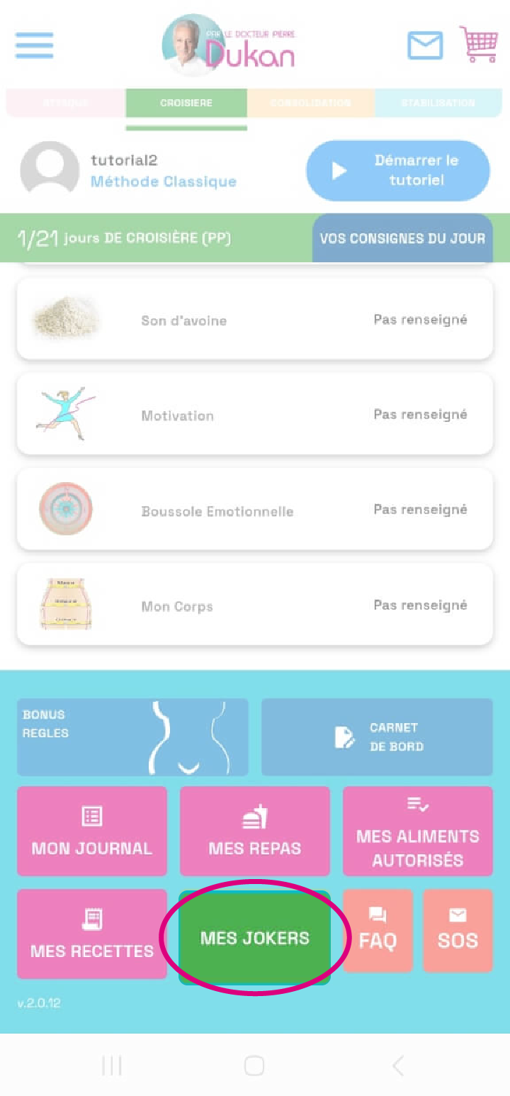 Le Joker hebdomadaire en croisière répond au besoin pressant d'un aliment "interdit", manifesté pendant plusieurs jours consécutifs, en proposant un "écart contrôlé". Vous trouverez ici les indications pour votre joker. Une fois utilisée il ne réapparaîtra que une semaine plus tard.