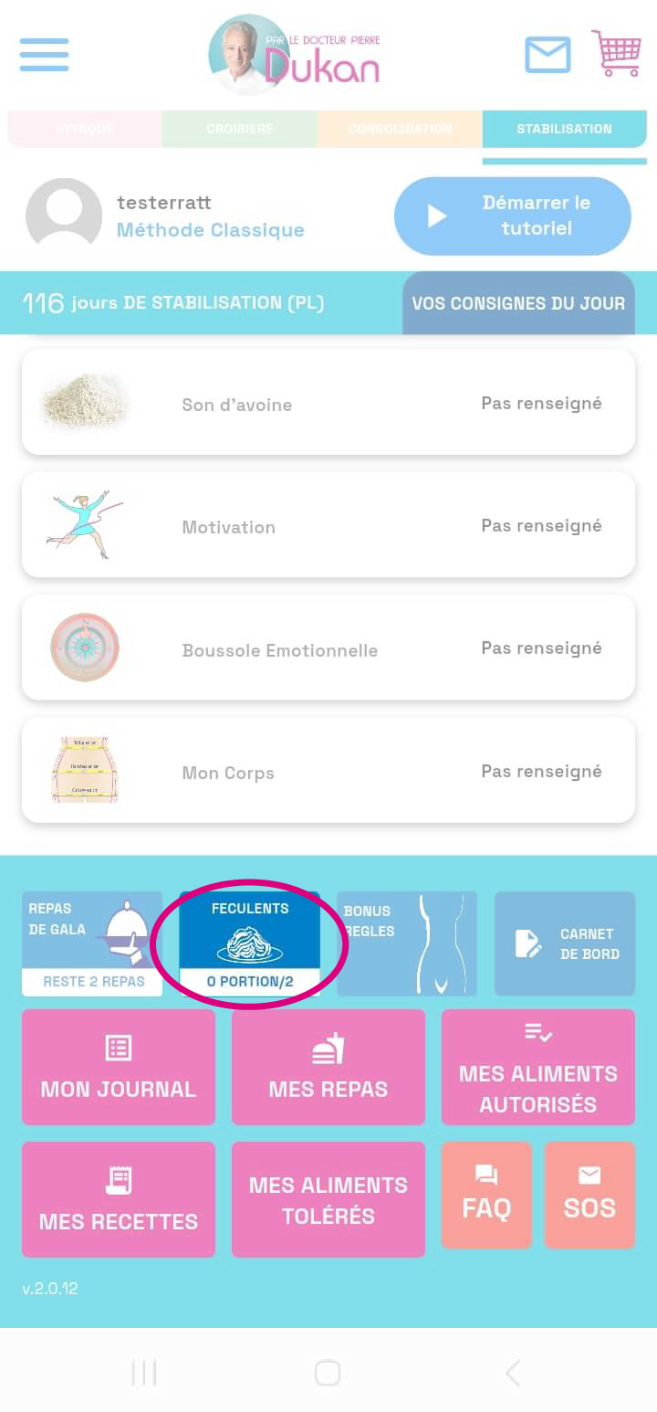 Vous pouvez cliquer sur ce bouton pour connaître la liste et les portions des aliments à utiliser comme féculent en escalier nutritionnel et consolidation