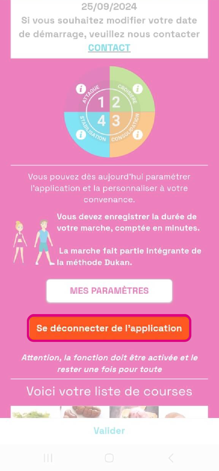 N'oubliez pas qu'en vous déconnectant de l'application vous ne recevrez plus de notifications sur votre programme au quotidien.