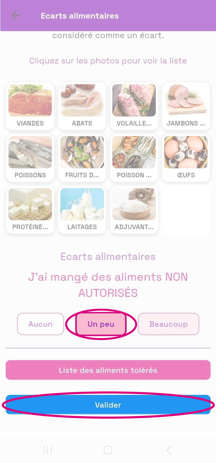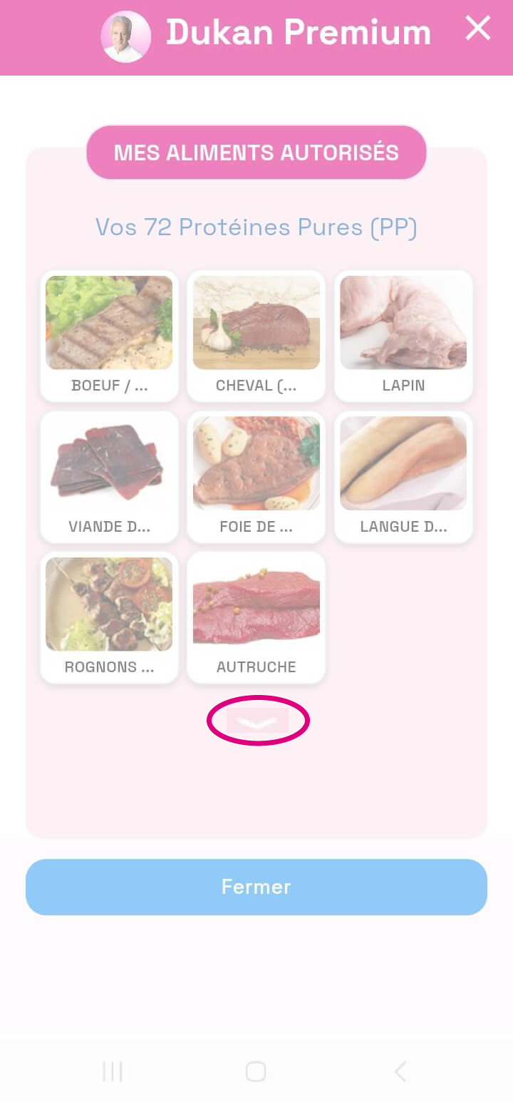 Appuyez sur la flèche pour ouvrir la liste de tout vos aliments autorisés.
