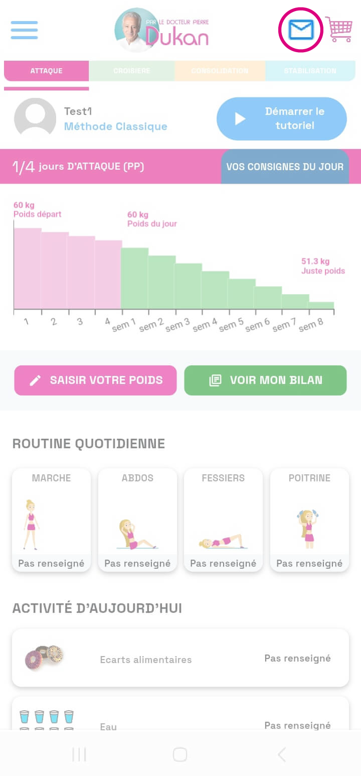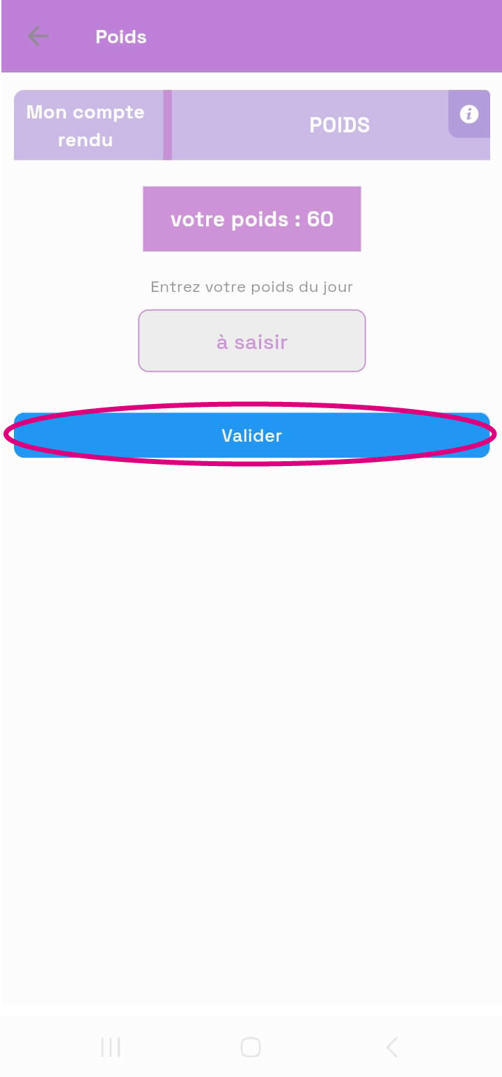 Pensez à vous peser chaque jour, cliquez sur le bouton Saisir votre poids pour ouvrir la page.