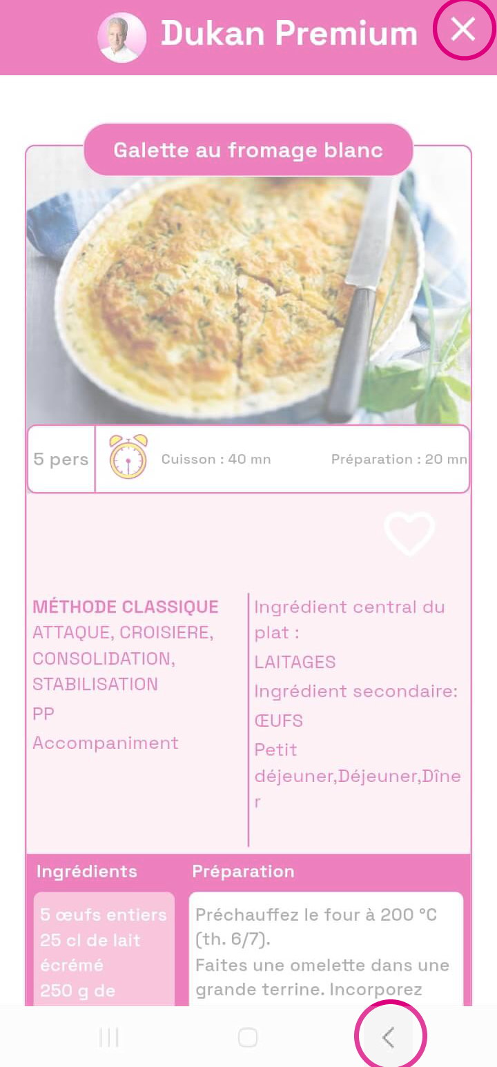 Pour fermer la page appuyez sur la croix ou le bouton retour.