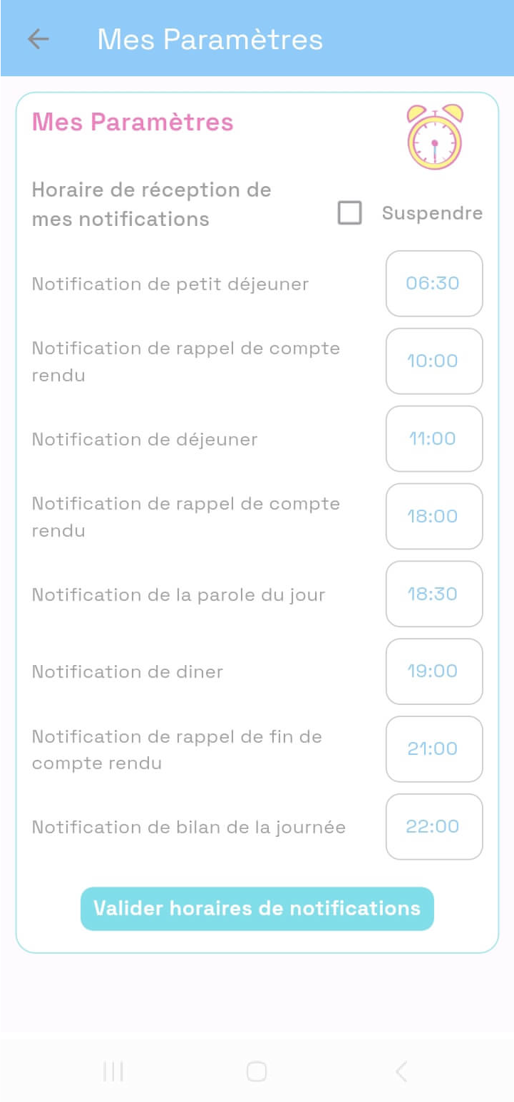 Dans vos paramètres vous pouvrez définir les horaires de réception des notifications.