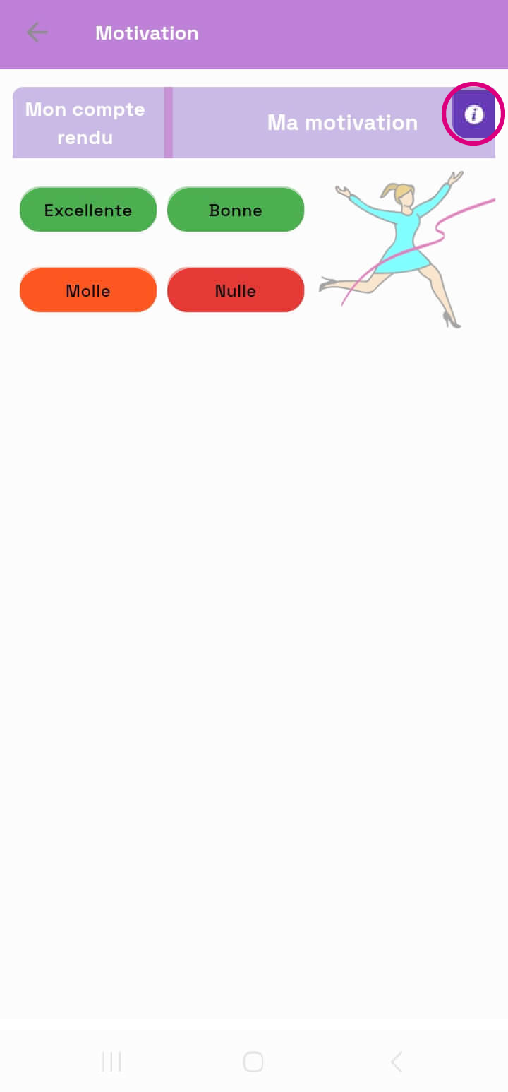 Chaque jour, Indiquez votre taux motivation. En cas de doute, vous pouvez toujours vos renseigner avec le bouton d'informations.