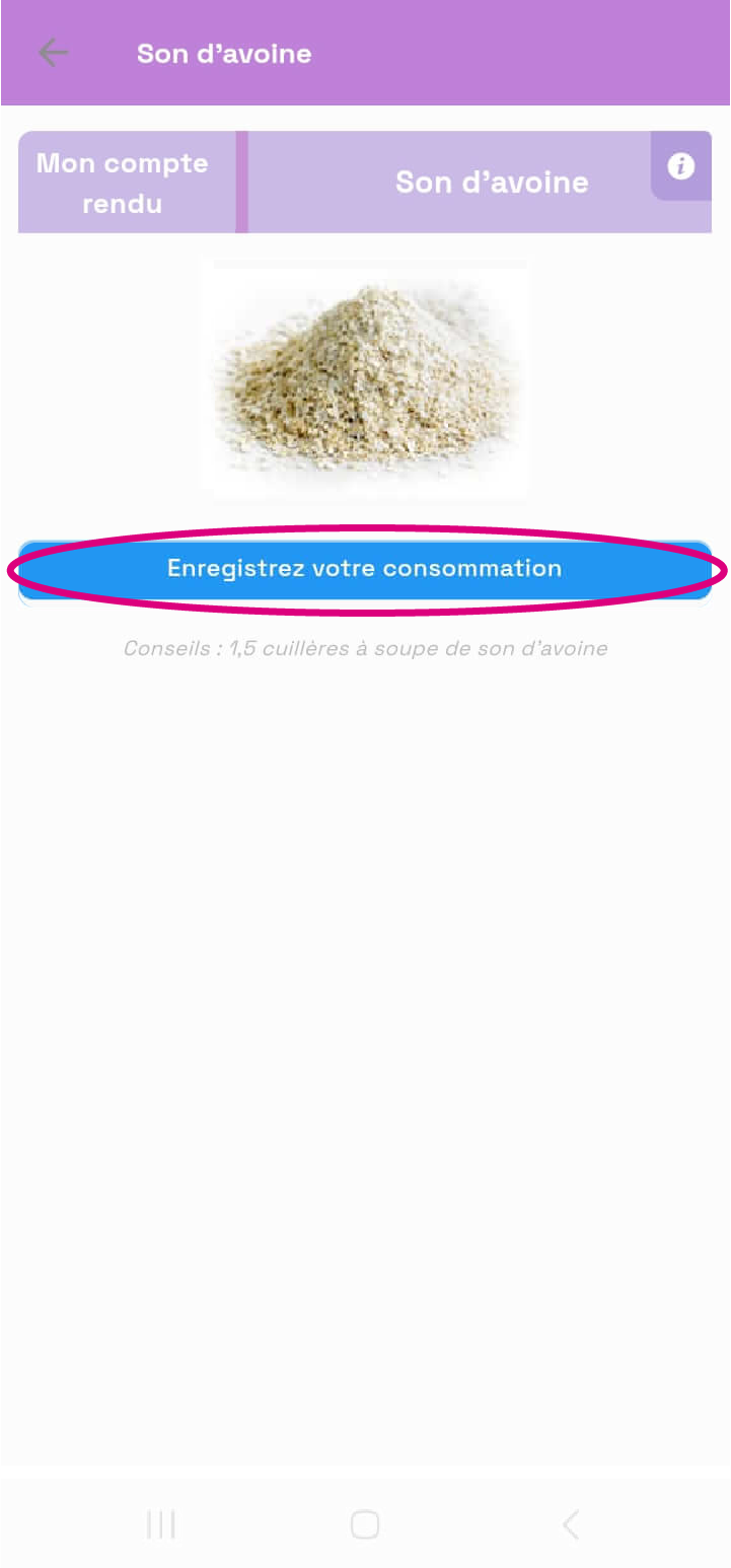 Chaque jour, nous vous conseillons de consommer du son d'avoine. Cliquez sur la quantité (CS = Cuillère à Soupe) puis enregistrer.