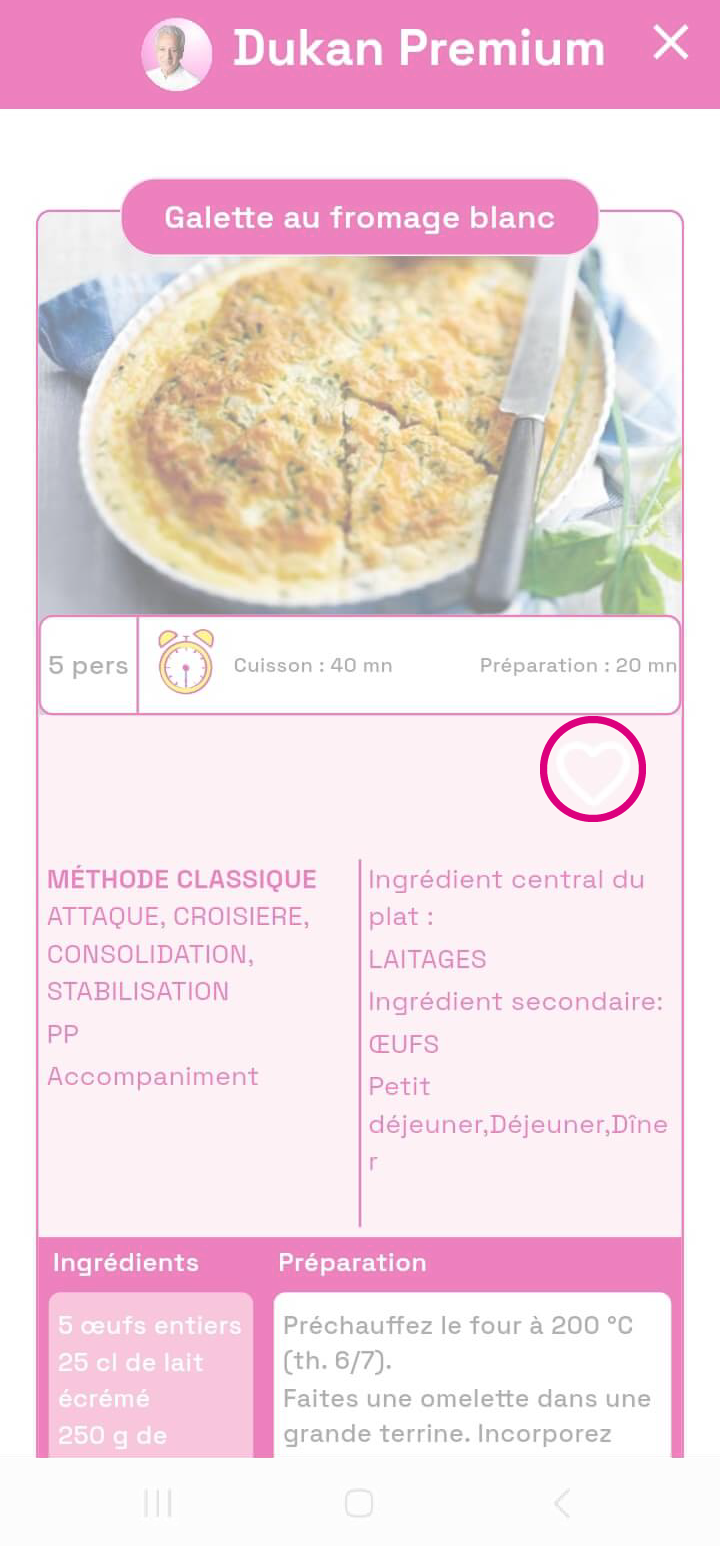 Vous pouvez ajouter une recette en favori en cliquant ser le cœur.