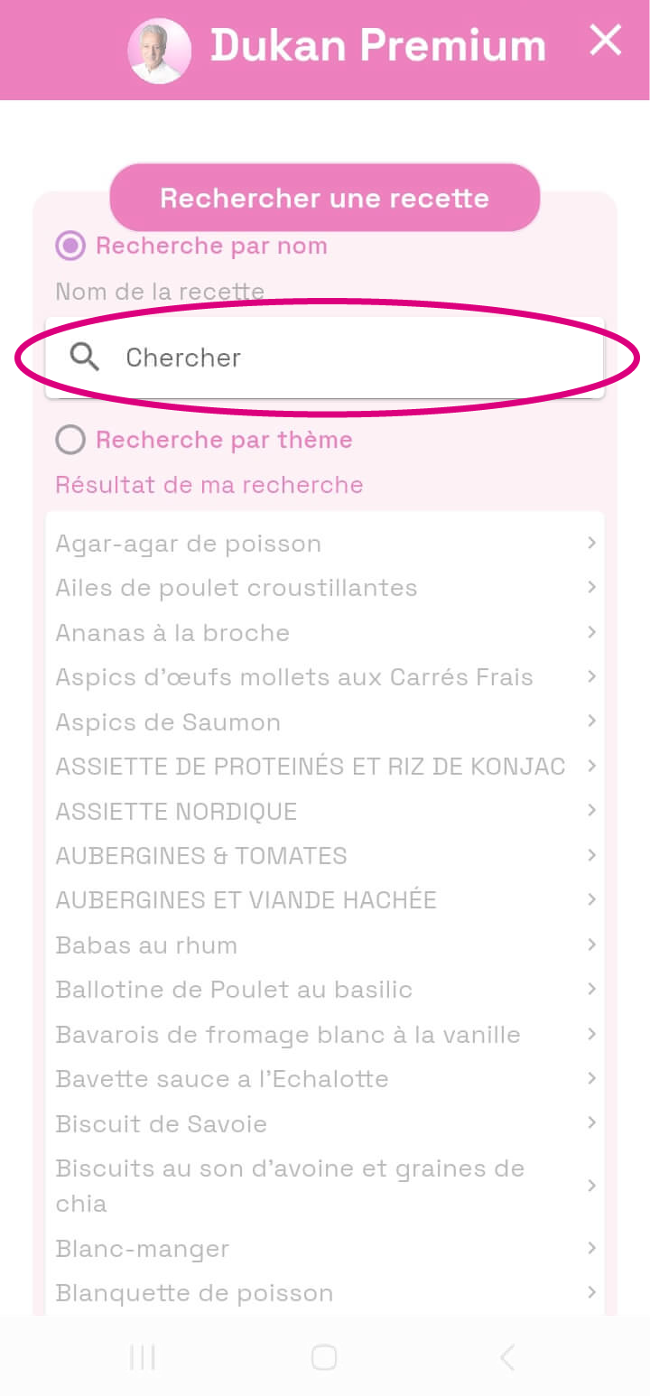 Vous avez la possibilité de rechercher directement une recette. Pensez à scroller.