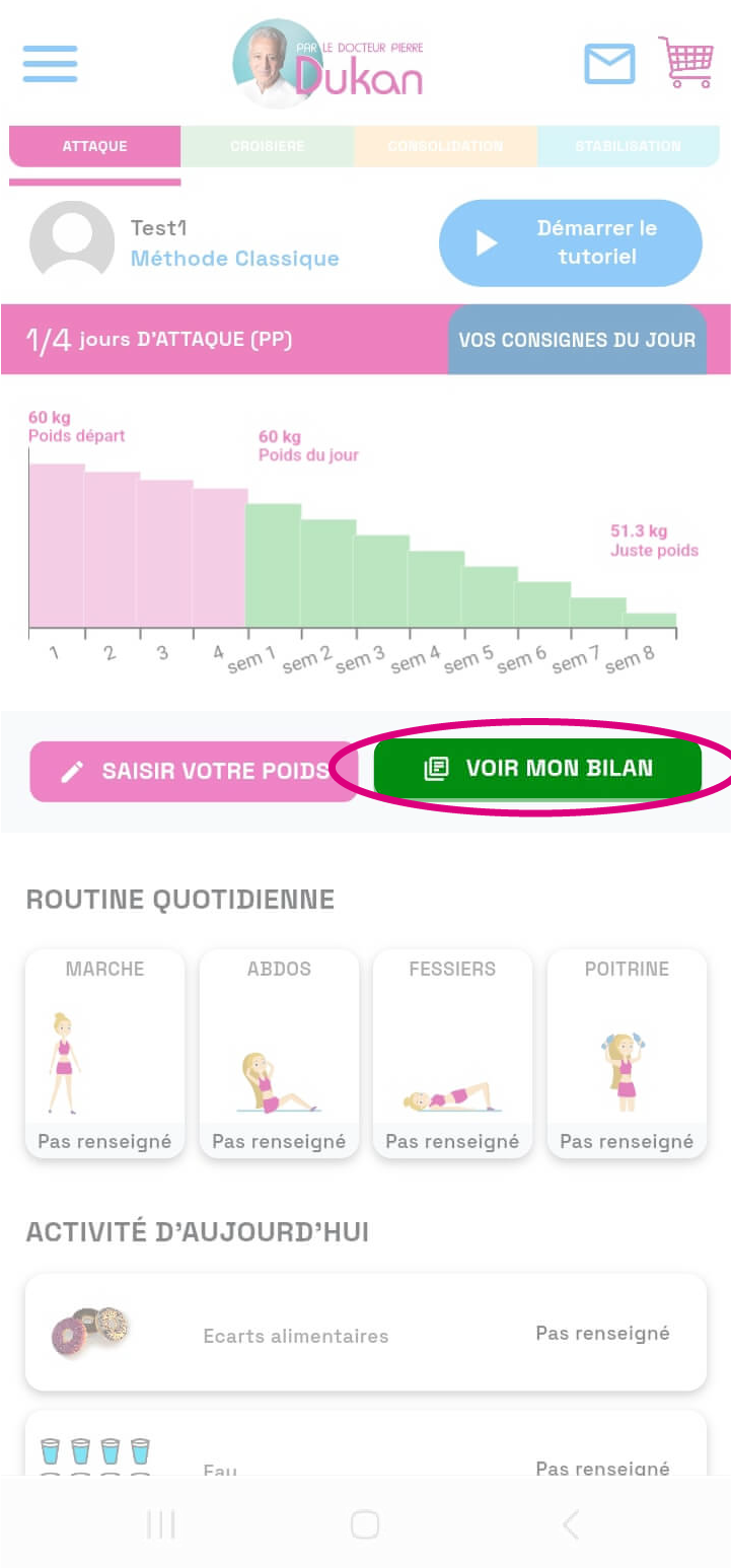 Tous les soirs, vous pourrez consulter votre bilan de la journée après votre dernière notifications.